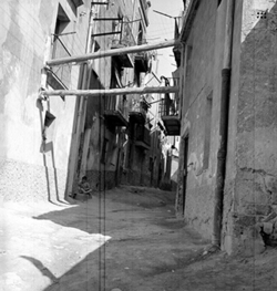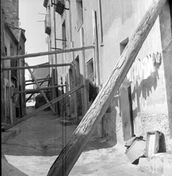 "Part alta del Canyeret; Carrer del Canyeret (?); cases apuntalades"