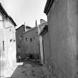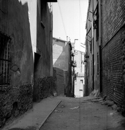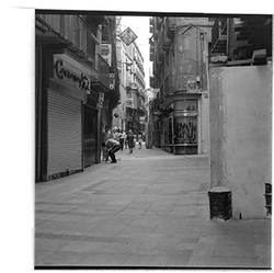 "Obres de restauració de la Seu Nova de Lleida; interior del porxo de la Plaça de la Catedral"