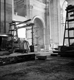 "Obres de restauració de la Seu Nova de Lleida; interior"