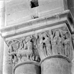 "Arquivoltes i mènsules de la porta dels Fillols de la Seu Vella; detalls"