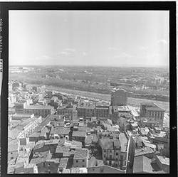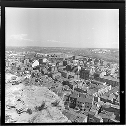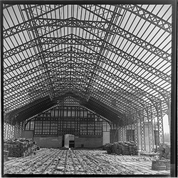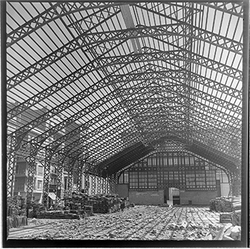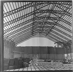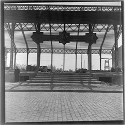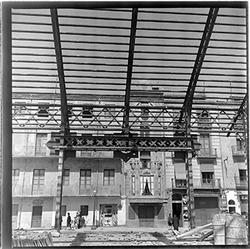 "Enderrocament de l’estructura metàl·lica del Mercat de Sant Lluís; al fons l’Avinguda de Blondel.\nEs veu la Casa de la Lira o casa Morera."