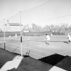"Camp d'Esports; porta principal d’accés des de la carretera d’Osca, actual Avinguda Rovira Roure"