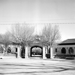 "Hospital Provincial de Santa Maria; porta principal d’accés des de la carretera d’Osca, actual Avinguda Rovira Roure"