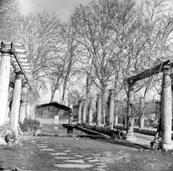 "Camps Elisis; caseta de fusta construïda per la Jefatura de Montes com a estand Feria de San Miguel (Fira de Sant Miquel), i posteriorment estand de Cervezas San Miguel"