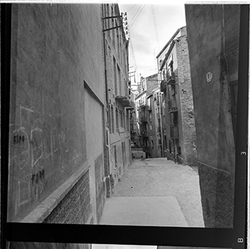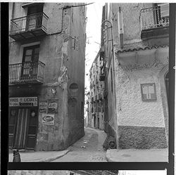 "Carrer de les Carnisseries; al fons el Carrer Major"