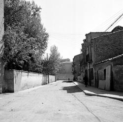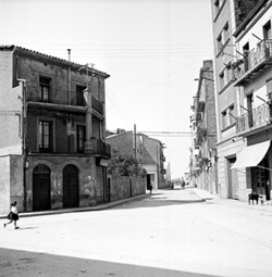 "Carrer de Vallcalent des del xamfrà amb el Carrer Ciutat de Fraga; al fons estaria l’actual Carrer Bisbe Martín Ruano"