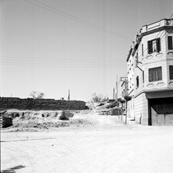"Finalització del Carrer Maragall, vist des del Carrer Doctor Combelles, a sobre de la Serreta de l’Escorxador; al fons es veu el Turó de Gardeny"