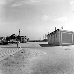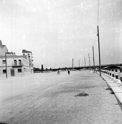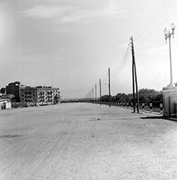 "Avinguda del Segre; en primer terme, una caseta de firaire; a l’esquerra comencen els jardins de la Plaça de la Pau, annexa a l’edifici del Govern Civil, i l’actual Carrer Riquer"
