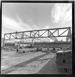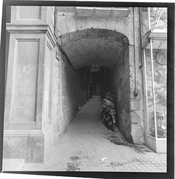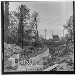 "Sèquia de Torres; obres de canalització i cobriment; sector de l'Avinguda d'Alacant, ja al xamfrà amb l'Avinguda de les Garrigues; al fons hi ha l’edifici RIBÉ - CALPE "