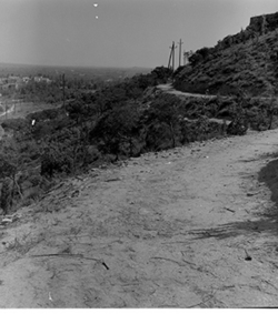 "Obres de repoblació forestal i reforma del camí de ronda al peu de les muralles, en la zona nord del turó, sobre el Camp de Mart"