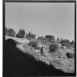 "Carrer de la Tallada; a la dreta les ruïnes del Palau dels marquesos de la Tallada, antic Palau Episcopal; l’actual al fons"