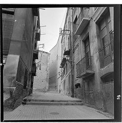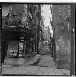 "Carrer de l’Almodí Vell; a l’esquerra les escales de la Seu Nova"