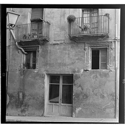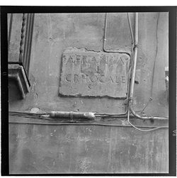 "Carrer de la Palma; Casa del prohom Onofre Cerveró; detall de la làpida romana amb inscripció AFRANIA L.L. CHROCALE"
