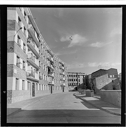 "Plaça de Sant Antoni Maria Claret amb els Bloques 1 de octubre i Carrer de la Palma i de les Monges"