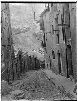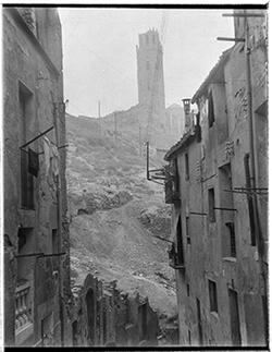 "Carrer de la Costa de la Magdalena, des del Carrer de la Magdalena; al fons, les muralles del Turó de la Seu Vella"