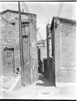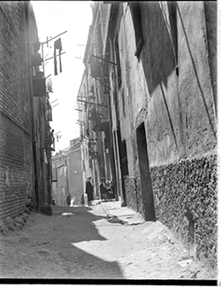 "Carrers de la Parra; en primer terme, uns nens juguen al carrer"