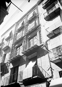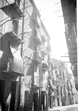 "Carrer de les Caldereries; a la dreta començaria el Carrer de les Carnisseries"