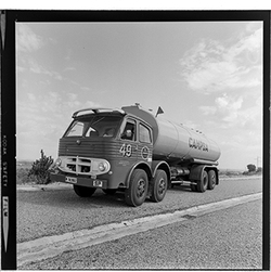 "Construcció del Polígon Industrial “El Segre”; camió de l’empresa Eduardo Velasco S. A. (CAMPSA), distribuïdora de petrolis"