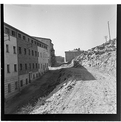 "Carrer Bisbe Torres des de l'Avinguda de Catalunya; a la dreta l'edifici de les Germanetes dels Pobres; al fons el Carrer Governador Montcada i el campanar de Sant Llorenç"