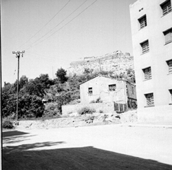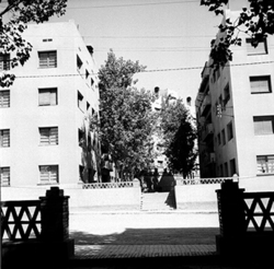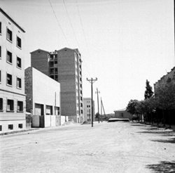 "Avinguda de Madrid des de Cots y Gayan; en primer terme els Blocs Militars, i al fons els Blocs José Antonio"
